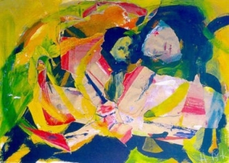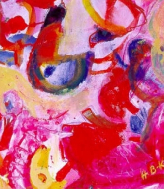 Die Bilder von Hanna Beck-Kuchenmüller fallen auf durch die Vehemenz des Farbauftrags, zumeist in leuchtenden Farben, geschickt, kraftvoll gesetzt, und souverän aufeinander abgestimmt. Ob in Tempera, Acryl, Öl oder in Mischtechniken, die Farben wirken harmonisch fließend oder kontrastierend grell, genau so plaziert, wie es der Kontext erfordert. Die Malerei ist nicht informell und auch nicht abstrakt, den Werken ist aber eine stark abstrahierende Komponente gegenständlicher Objekte eigen. In der Gundelfinger Ausstellung werden u.a. Bilder zum Thema "der fremde Garten" und Bilder aus der Serie "Teppich der Liebe" gezeigt. - Die Künstlerin erhielt ihre Ausbildung an der Staatlichen Akademie der Bildenden Künste in Stuttgart bei den Professoren Gollwitzer und Henninger, sowie in Salzburg bei Kokoschka. Seit 1997 hat sie einen Lehrauftrag an einer Stuttgarter Schauspielschule für Kunstgeschichte, Malerei und Bühnenbild inne.