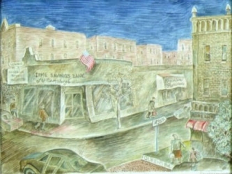 Simon Donikian | 43rd Street and Queens Blvd. | 1999 | watercolor on paper | 7 3/4 x 10 1/2 inches | ||||||||||||||||||||