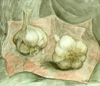 Simon Donikian | Still life with garlic | 1999 | watercolor | 7 x 8 inches | ||||||||||||||||||||