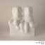 The Flemish sculptress Odile Kinart evokes a world peopled with charming and benevolent beings. These peaceful characters endowed with massive heads are seated or lying down in nonchalant positions that convey warmth. The little fellows with their round stomachs and the little gals with their ample hips are lively and unposed, sharing the same bath in an outburst of spontaneity and tenderness. From time to time they drift, motionless, in a canoe or lie stretched out on a comfortable bed or a soft sofa. In this way these couples benefit intensely from the pleasures of life. Wisely, they abandon the frantic pace of the city and they catch their breath in complete tranquillity within their intimate cocoon.
