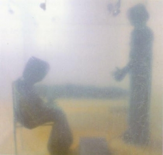 From the dark enclosed space of Akmut's work The Suppression of Meaning, Pol / poe / tics of Mem / ory, we move into the light of Aoyagi's Passing. These two artists seem to have arrived at opposite treatments of a similar conundrum. How to make visible an emotional state, a lost history a melancholia? The naming of the artists' cultural backgrounds, Akmut (Pakistan) and Aoyagi (Japan), seems again to be contradictory: essential but not central to the concerns of the project. Akmut's space plunges us into a heart of darkness where violence is everywhere, her own past works have been obliterated and remade to represent the destruction of the values of the Indian subcontinent. Some of her past works derive from projects with Jo Spence concerning making family histories visible, highlighting the invisibility of women's history, Akmut has used the metaphor of destroyed tea-chests and the vitrine as a place of birth, rest and death to strike a balance between destruction and creation. The packaging and transportation themes echo Akmut's situation, her work inhabits a space in which she can acknowledge two places in her search to situate herself, not an uncommon phenomenon amongst migrant communities in the West.
