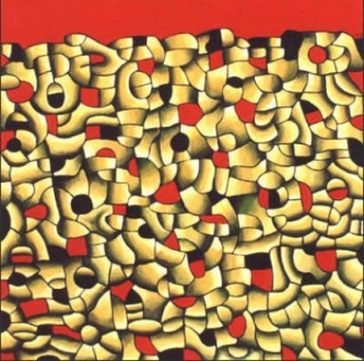 He starts from the simplest way to reach the richest effects. His goal is to stay as close to the edge as possible---to keep that sense of organic happening, as if the painting had grown itself rather than having been crafted by him. Yet it is the artist's eye, which seeks to prevail--telling the hand to add that last brush stroke which makes it all happen.