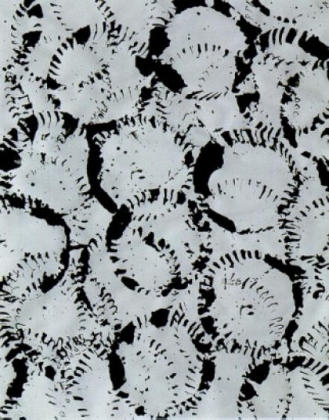 Seit 1984 lebt und arbeitet der Künstler Ulrico in Köln und entwickelt seine Arbeiten aus dem Spannungsfeld "Mensch und Umwelt" bzw. "Kultur und Natur". Der gemeinsame Nenner seiner neuesten Werke sind die "cookie papers", Pralinéhäubchen und Keksförmchen aus Metall. Mit ihnen unternimmt er den Versuch einer Synthese von Kultur und Natur. Die gewählte Hohlform - eine reale wie geistige Transporthilfe - führt zu Assoziationen in beiden Bereichen. Sie läßt an See-Anemonen, an irdische Blumen oder himmlische Sterne denken. Als Kreisform mit gefaltetem Kranz erinnert sie aber auch an Kulturgüter wie Lampenschirme oder Faltenröcke. Als Eingang zur gedachten Höhle deutet sie auf das Weibliche hin, das auf seine Art Natur und Kultur vereint.