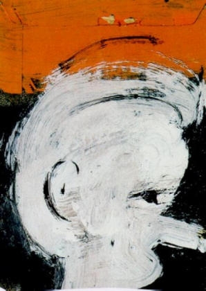 The water-colour Mann mit grünem Horn (Man with a Green Horn) dates from the Seventies. It is the eye, which, like some prehensile device protrudes from the head, as if perception and the perceived had merged, as if the artist suffers this protrusion when seeing and viewing not owing to his "vision as a seer" but owing to his vulnerability. Dahn returns to this motif in 1990, this time in the shape of a nose, reminiscent of the story of Cyrano de Bergerac (1619 - 55) and perhaps it is also reminiscent of Alberto Giacomettis "Nose" (1947), which Jan Hoet once termed a "drill'. The nose, too, is a protrusion, a sensory organ, the form and size of which here express astonishment and concern. The expression which Walter Dahn pinpoints in all the faces he has painted over the years is one of defencelessness vis-à-vis that which the faces are seeing or viewing. They gaze in such a manner as to make sure that they can keep a distance between themselves and what they see when they are seeing with some inner eye.