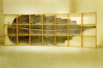 The fact that green leaves are sensitive to light is no longer a secret for anyone; the fact that this reactivity lends them their inherent vitality and chlorophyll colour is basic knowledge; but the fact that photosynthesis bears a literal, though uncanny resemblance to photography is something that the Canadian artist Roberto Pellegrinuzzi demonstrates with singular virtuosity. Attracted to the macroscopic and labyrinthine structure of foliar tissue, he constructs walls of leafy images, outsized enlargements of the undaunted encounter between a searching lens and tree leaves permeated by light. The resulting photographs are literally pinned up in special boxes similar to the cases used to display butterflies. These boxes are then used like bricks to erect a new form of monument to the glory and memory of the number one iconic force in our time: photography.