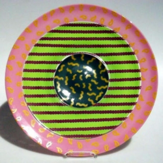 Jonathan Baskett | Aus "CHAOS PLATES" Serie | 2000 | Dreifach-Incalmo mit Emaildekor | Durchmesser ca. 45 cm | ||||||||||||||||||||